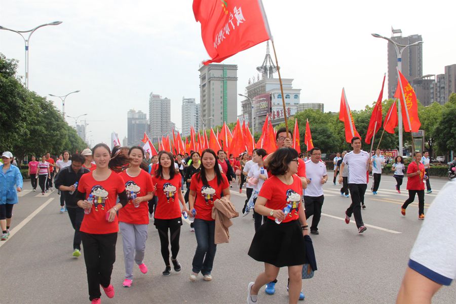 4月22日早8点,我校三十余名参赛教师在工会副主席商萍的带领下,乘坐学校大巴来到了比赛起点—市政府人民广场。此次长跑路线为:人民广场起点——长安大道——十六潭路——银桂路——双鹤路——同心桥——人民广场终点,全程约5公里。
