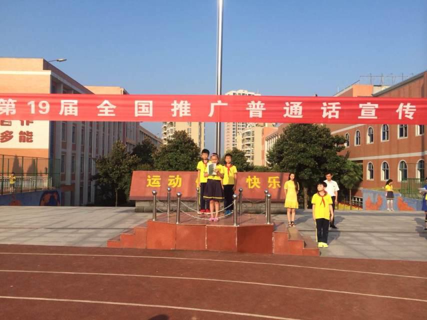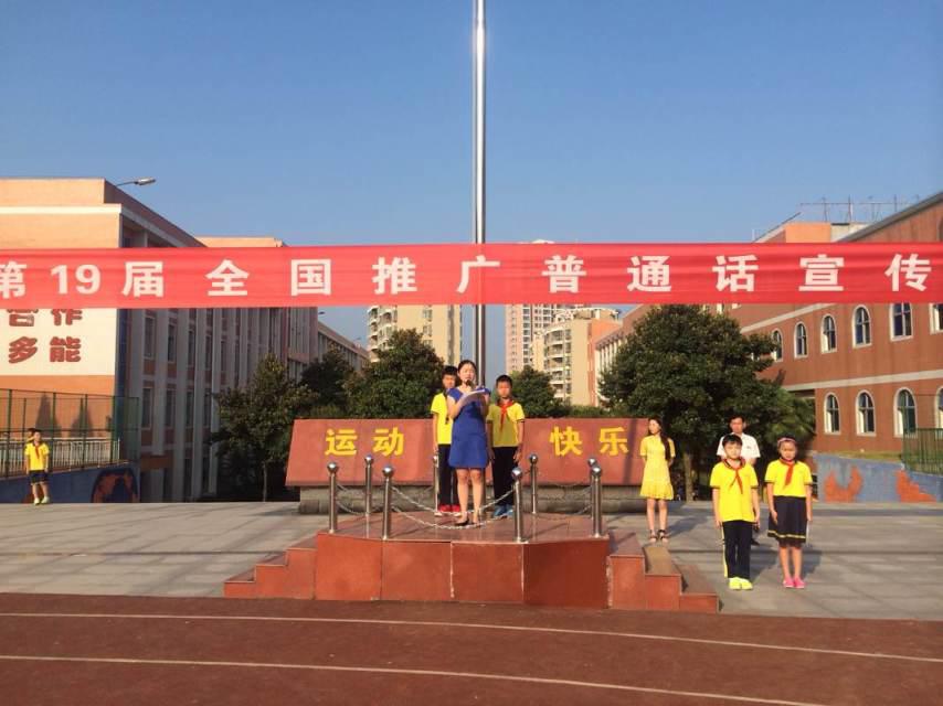 9月12日,全国第19届推广普通话宣传周咸宁市实验小学开幕式在大操场的升旗仪式上隆重举行,本届推普周的主题是:大力推行和规范使用国家通用语言文字,助力全面建成小康社会。 我校全体教职工,4000多名学生一起参加了开幕式。