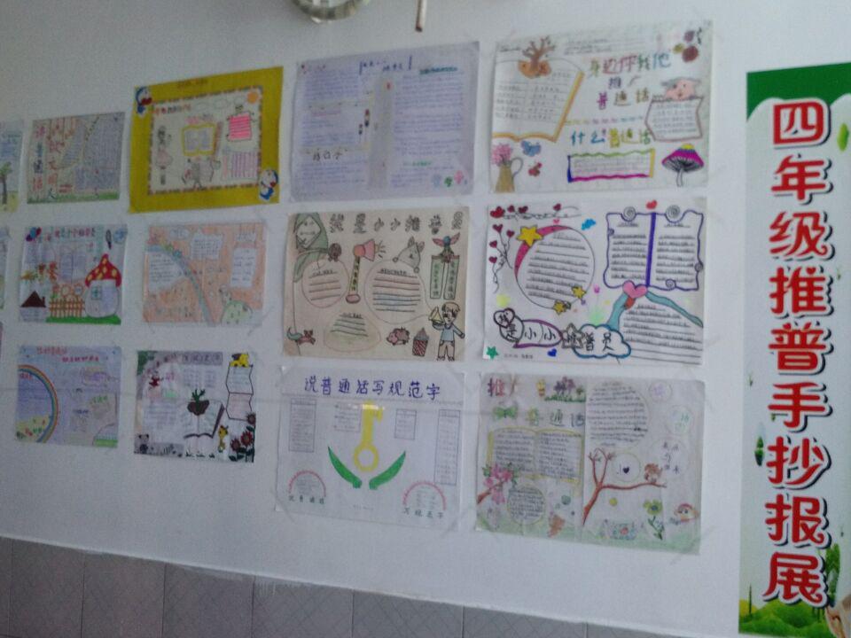 在三、四年级开展了以“我是小小推普员”为主题的手抄报比赛活动。此次活动一共评选出学生精心制作的手抄报75份,手抄报字迹工整,内容切题,且配有图片和剪贴画,反映出学生对本次活动的重视,被张贴到宣传栏展览。