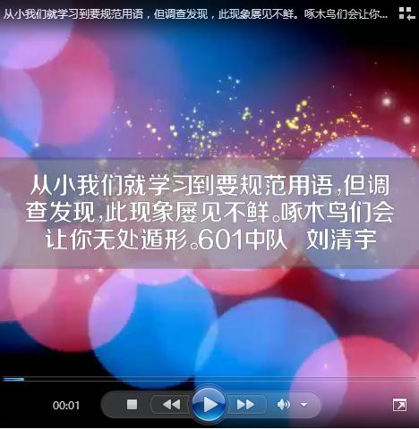 604班王梦娇同学向全校师生发出倡议“说普通话,写规范字,做文明人”。