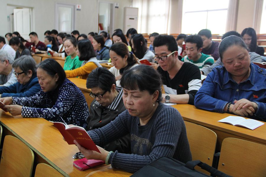 第一,学校党建办公示了我校党员3月份党费收缴情况;全体党员现场缴纳了4月份党费。第二,总支副书记、校长习海平同志领诵了《党章》第二章。第三,总支纪检委员洪耀明同志引领学习《求是》(2016年第四期)上的重要理论专篇《认真贯彻执行〈准则〉和〈条例〉 推进全面从严治党、依规治党》,了解最新的党规党情。第四,杜小清同志传达市教育系统“主题党日+”活动暨2016年党建工作会的主要内容,重点传达了市直机关工委副书记龙华云同志和市教育局党组书记、局长李旭东同志关于如何抓好党建工作的讲话精神。第五,杜小清同志对今天的“主题党日+”活动做了总结,肯定了全体党员良好的纪律和认真学习的态度,要求全体党员同志把这样严谨认真的态度放到日常教育教学工作中去。最后,此次“主题党日+”活动在肯定老党员同志们积极参与的掌声中圆满落幕。