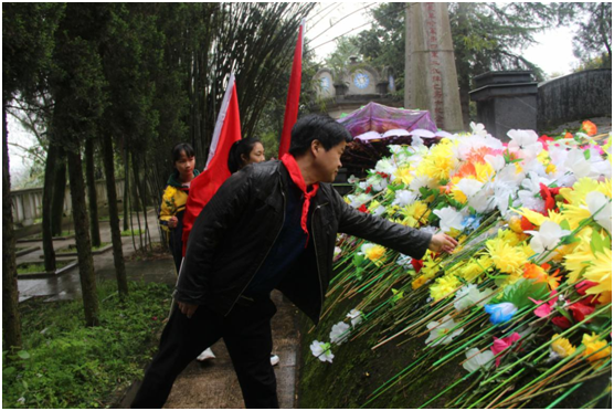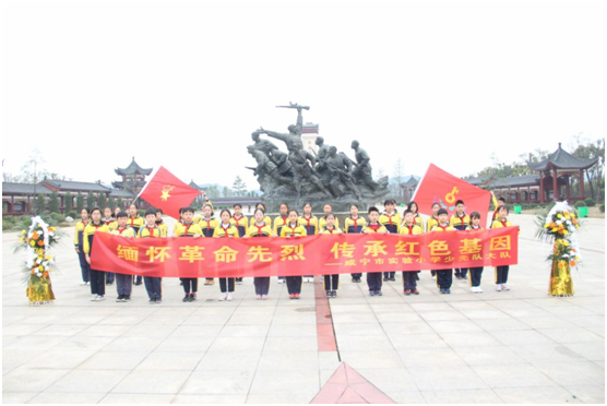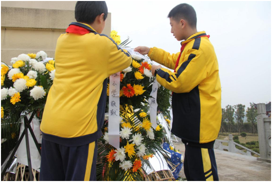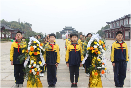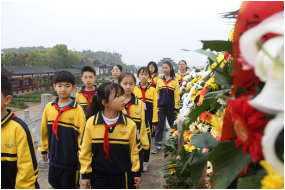 第二站,来到了咸安区汀泗桥镇国民革命军第四军北伐阵亡战士纪念碑,少先队员们依次来到烈士墓前,向烈士敬献鲜花。面对着革命烈士的陵墓,孩子们一改往日的喧闹与嬉戏,停下脚步,轻轻地走上前,献上鲜花。此时的孩子们,神情庄重,少先队员们感慨万千:“我们现在的幸福生活是革命先辈们用鲜血换来的,非常来之不易。”他们立志要向革命烈士学习,爱祖国、爱人民,爱家乡,为实现中华民族伟大复兴的中国梦贡献自己的力量!